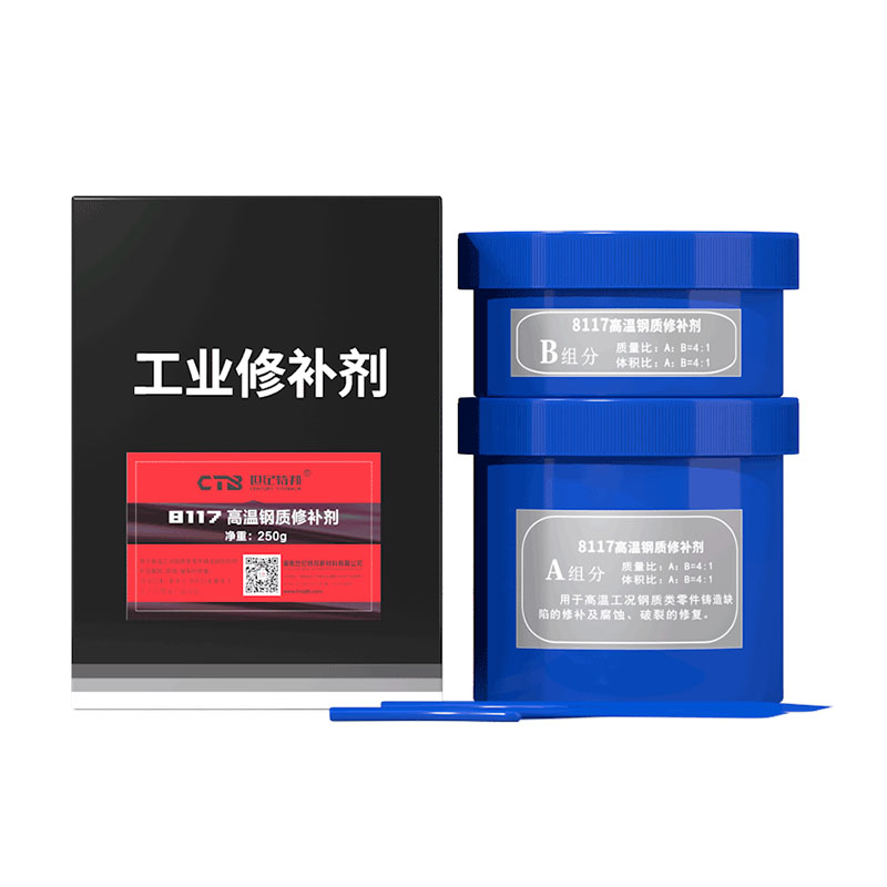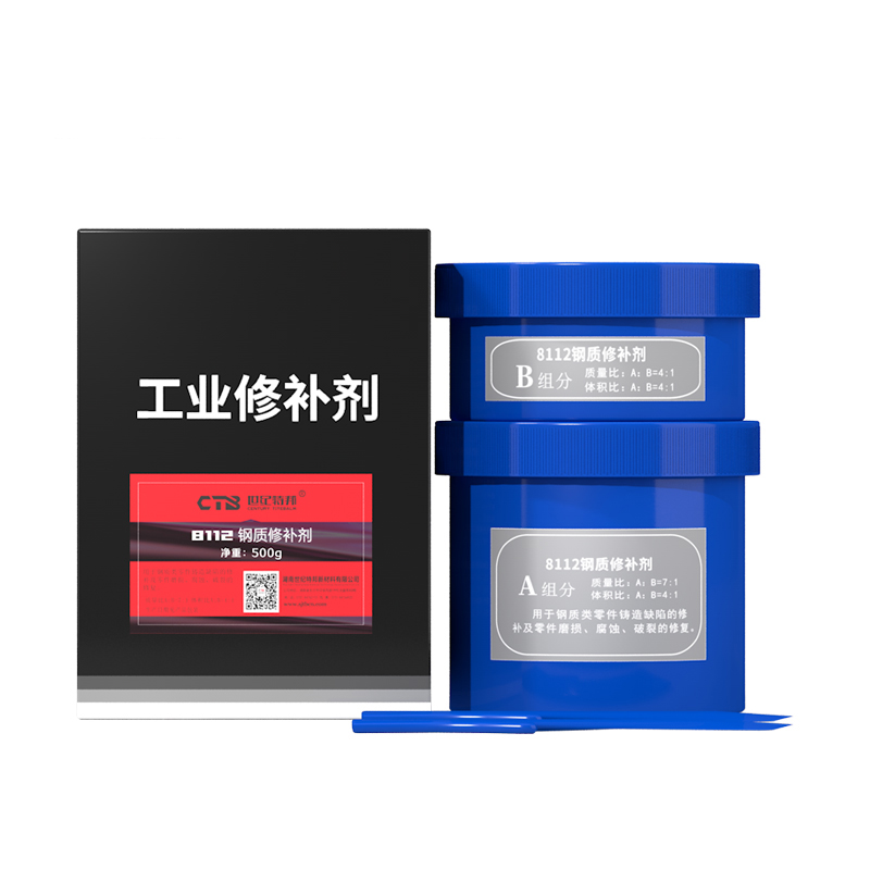 3. 雙組份,膠泥狀,鋼色,綜合機械性能好,用于高溫工況各種碳鋼、合金鋼,不銹鋼的修補。